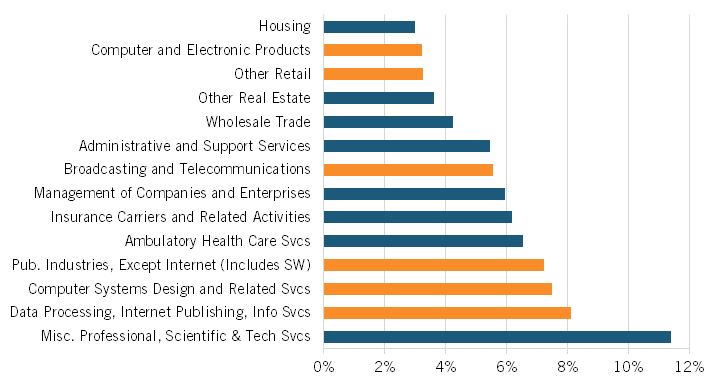 Which U.S. industries are currently growing the fastest?